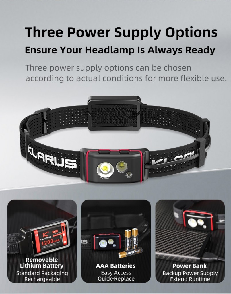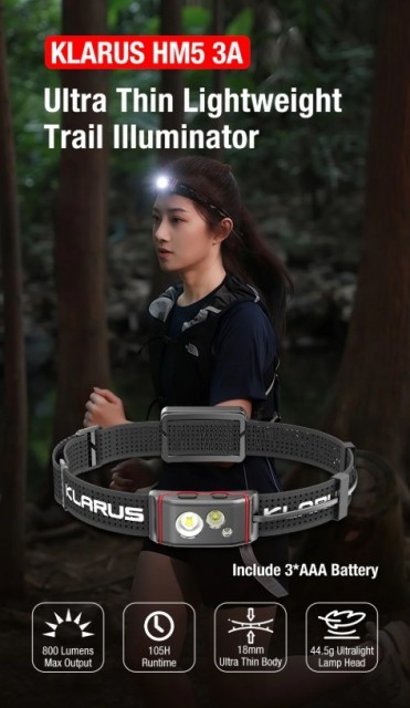 Klarus HM 5 Hodelykt AAA - Lightweight High Output Triple-Light