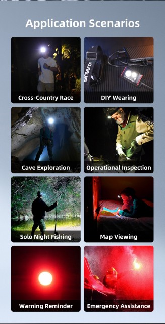 I tillegg til forskjellig lysstyrkenivå har lykten strobe og rød led.