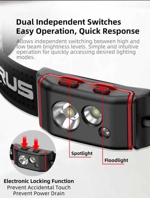 Lettvekts hodelykt velegnet til flere formål. Kan brukes som joggelykt eller hverdagslykt. Tar liten plass, medfølger 3 x AAA batteri,